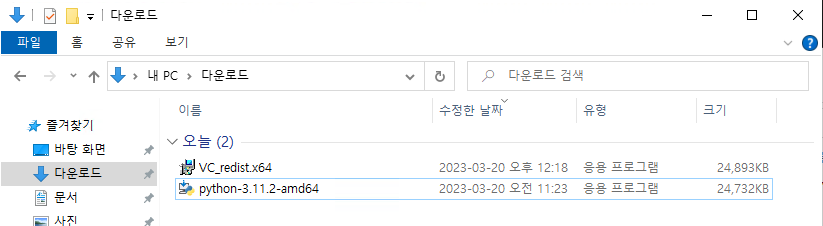 (위 링크의 x64 비트 다운로드 링크 : https://aka.ms/vs/17/release/vc_redist.x64.exe)