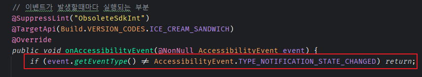 버그 해결 출처 : https://stackoverflow.com/questions/31308841/cannot-access-notification-through-android-accessibilityservice