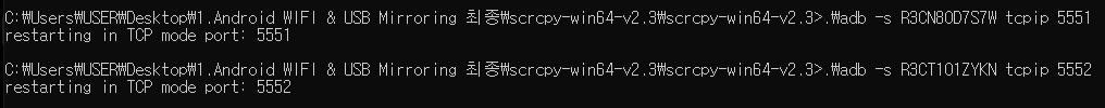 .\adb -s 자신의_디바이스2_ID tcpip 5552
