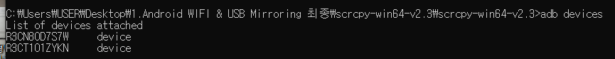 .\adb -s 자신의_디바이스2_ID connect 디바이스와_연결된_IP:5552