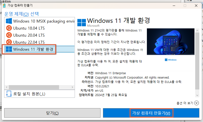 DVD드라이브에 windows11.iso파일 올리고 설치하면 끝